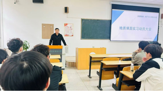 地质填图实习是地质类专业人才培养中不可或缺的核心实践环节,是检验理论学习成效、锤炼野外实操能力、塑造专业精神品格的关键载体,对夯实专业基础、提升综合素养具有不可替代的重要作用。为确保2024级韩城地质填图实习安全、有序、高效开展,3月30日上午,公司2024级资源勘查系、地下水科学系韩城地质填图实习动员大会在9号教学楼如期举行。经理孙学阳、副经理陈应涛、副书记刘训明、2024级辅导员李琳、实习队队长付常青及全体实习指导教师参会,会议就实习统筹安排、纪律规范、安全保障等工作进行全面部署。