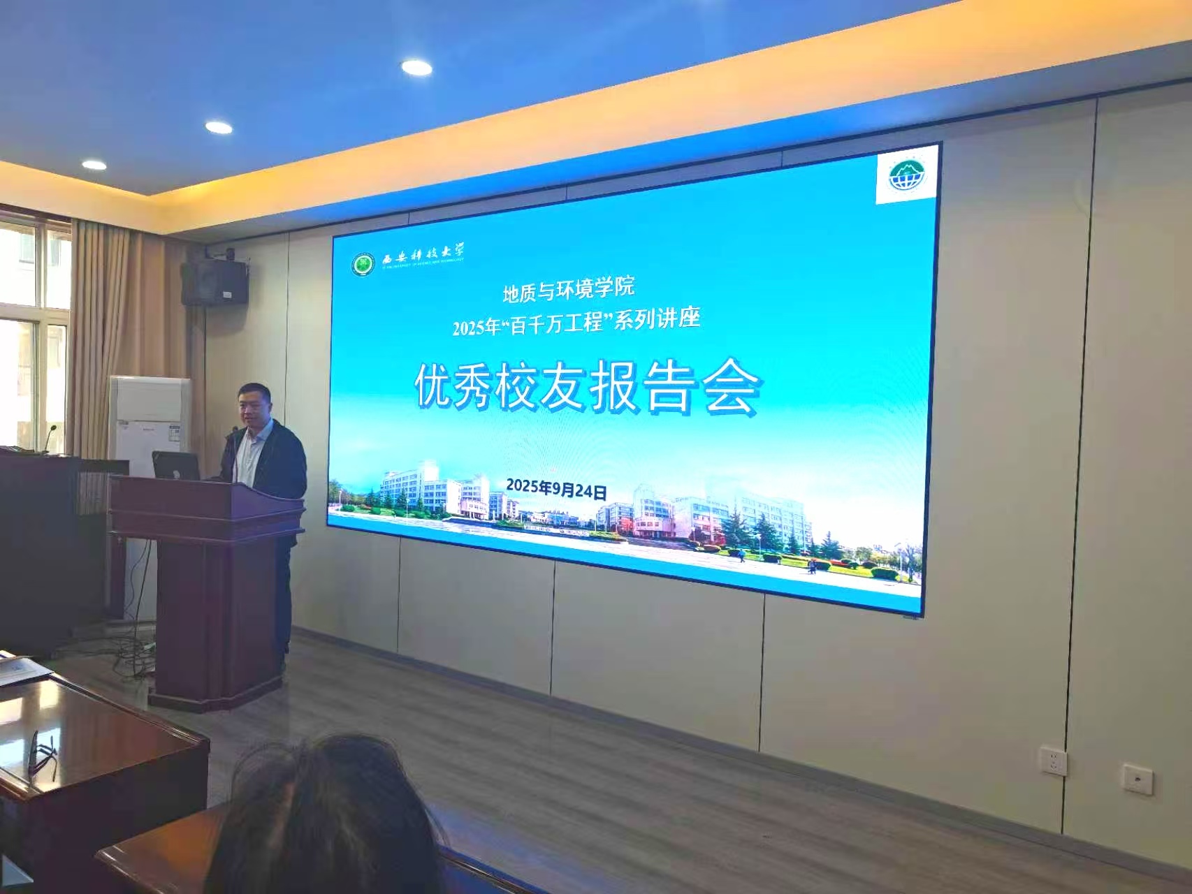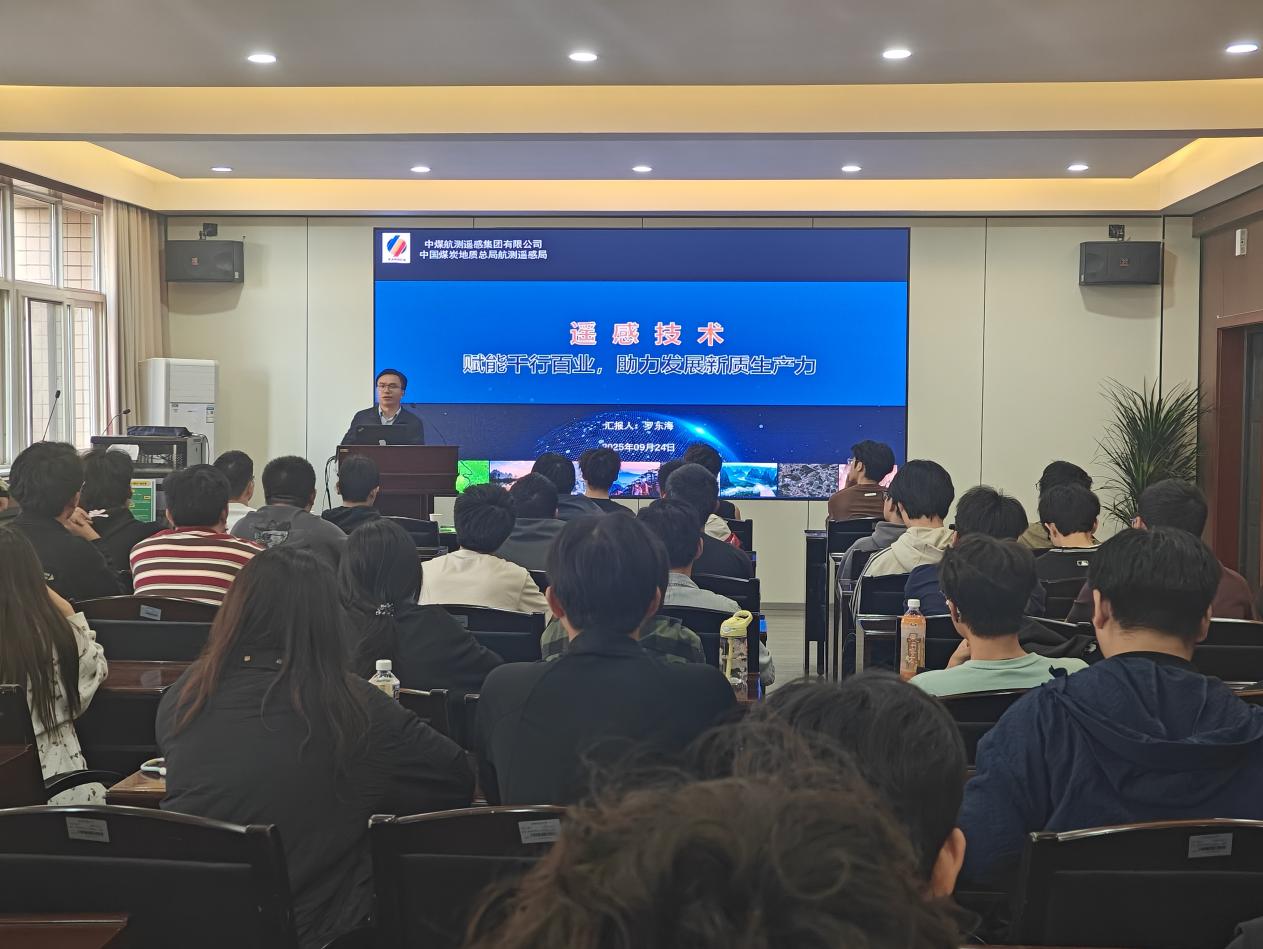 罗东海是2010届地质工程专业硕士毕业生,现任中煤航测遥感集团西安煤航遥感信息有限公司副总经理。罗东海首先介绍了中煤航测遥感集团作为行业领军企业在遥感技术研发与应用方面取得的最新成果,结合工作实践展示了遥感技术如何在地质勘查、环境监测、智慧城市、农业林业等领域发挥关键作用,有效赋能新质生产力的发展。随后,他回忆了在母校的学习时光,讲述了从校园走向企业、不断钻研成长为技术专家的历程,鼓励员工夯实专业基础,紧跟技术前沿,注重实践能力培养,将个人成长融入国家发展战略和行业进步的需求之中。整场报告内容翔实,案例生动,既有理论高度,又有实践指导意义,赢得了在场员工的阵阵掌声。