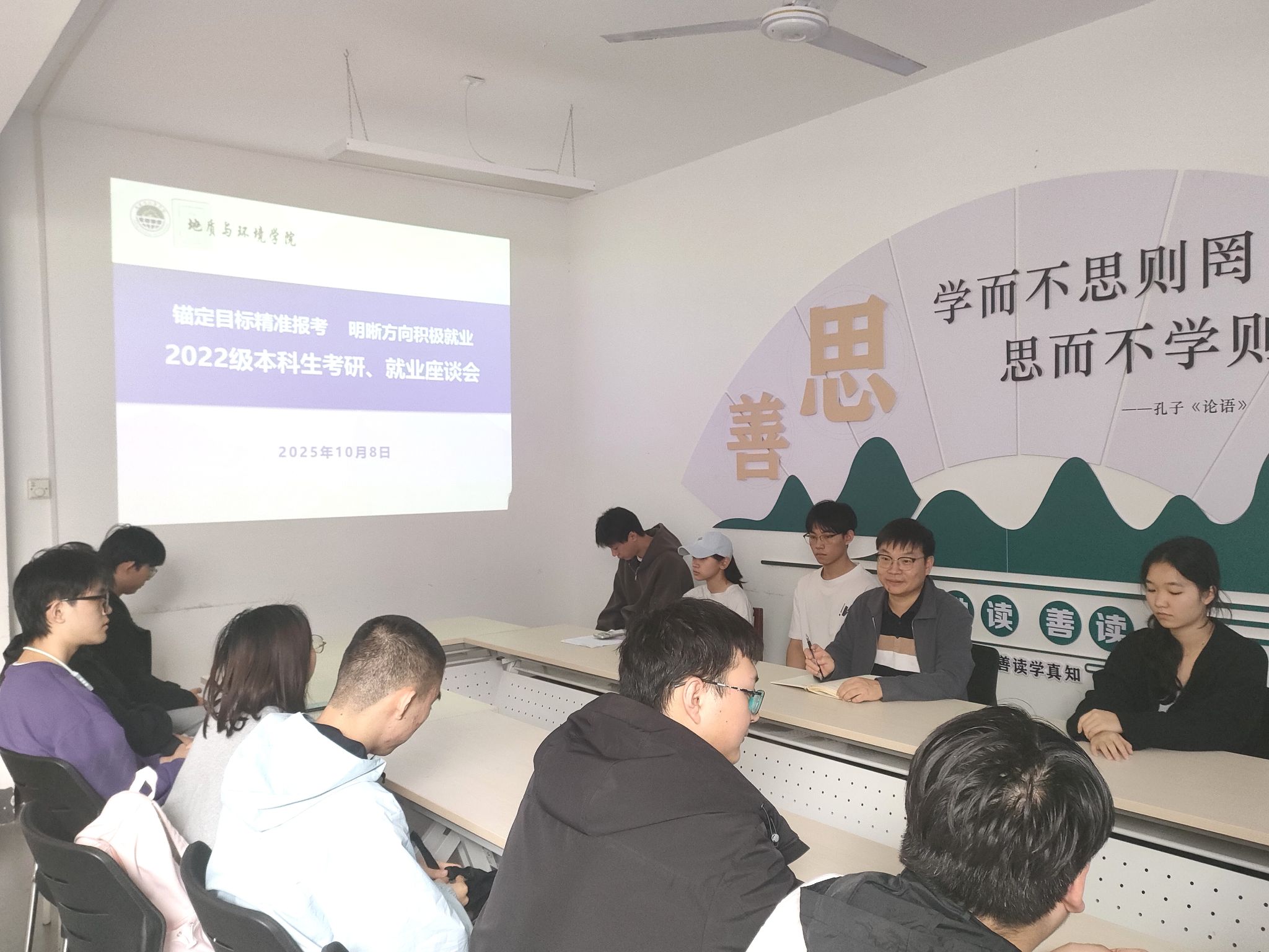 10月8日,学院在“一站式”员工社区召开2022级本科生考研、就业座谈会,2022级本科生代表20余人参会,会议由带班辅导员余小涛主持。