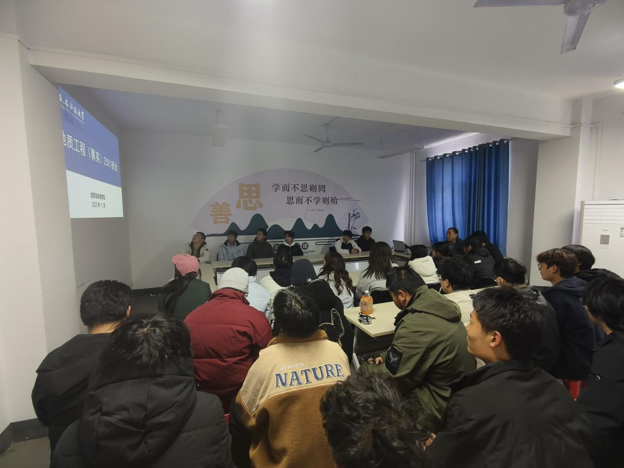 在菁英班班风、学风建设方面,赵洲强调全体同学应着力培育积极向上、团结互助的班级氛围,增强集体荣誉感和班级凝聚力,良好的班风和严谨的学风是成才的重要保障。同时要和谐处理宿舍关系与同学关系,营造温馨和睦的生活学习环境,相互鼓励,共同进步。他寄语同学们,要树立远大理想,锤炼过硬本领,努力成长为能担时代大任的工程地质人才。