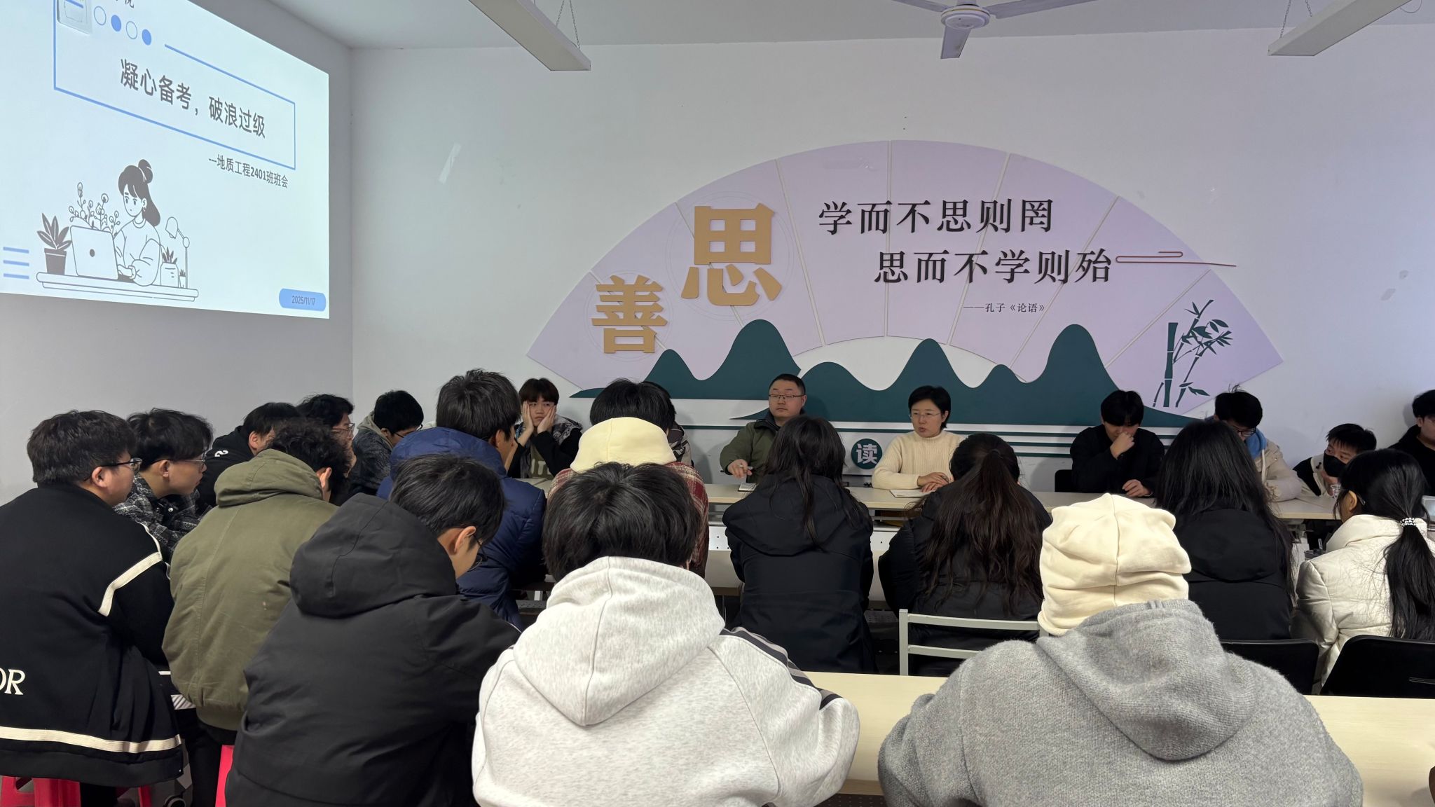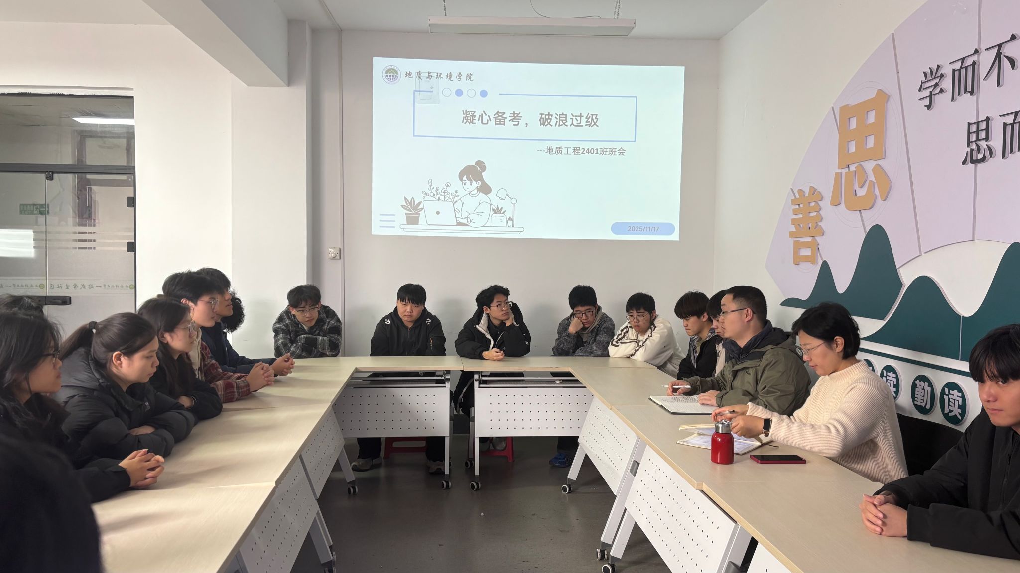 为帮助同学们高效备战英语四级考试,明确备考方向、掌握实用技巧,11月17日,地质工程2401班在“一站式”员工社区召开“凝心备考,破浪过级”主题班会。班主任李仁伟主持,辅导员李琳及全体同学参会。