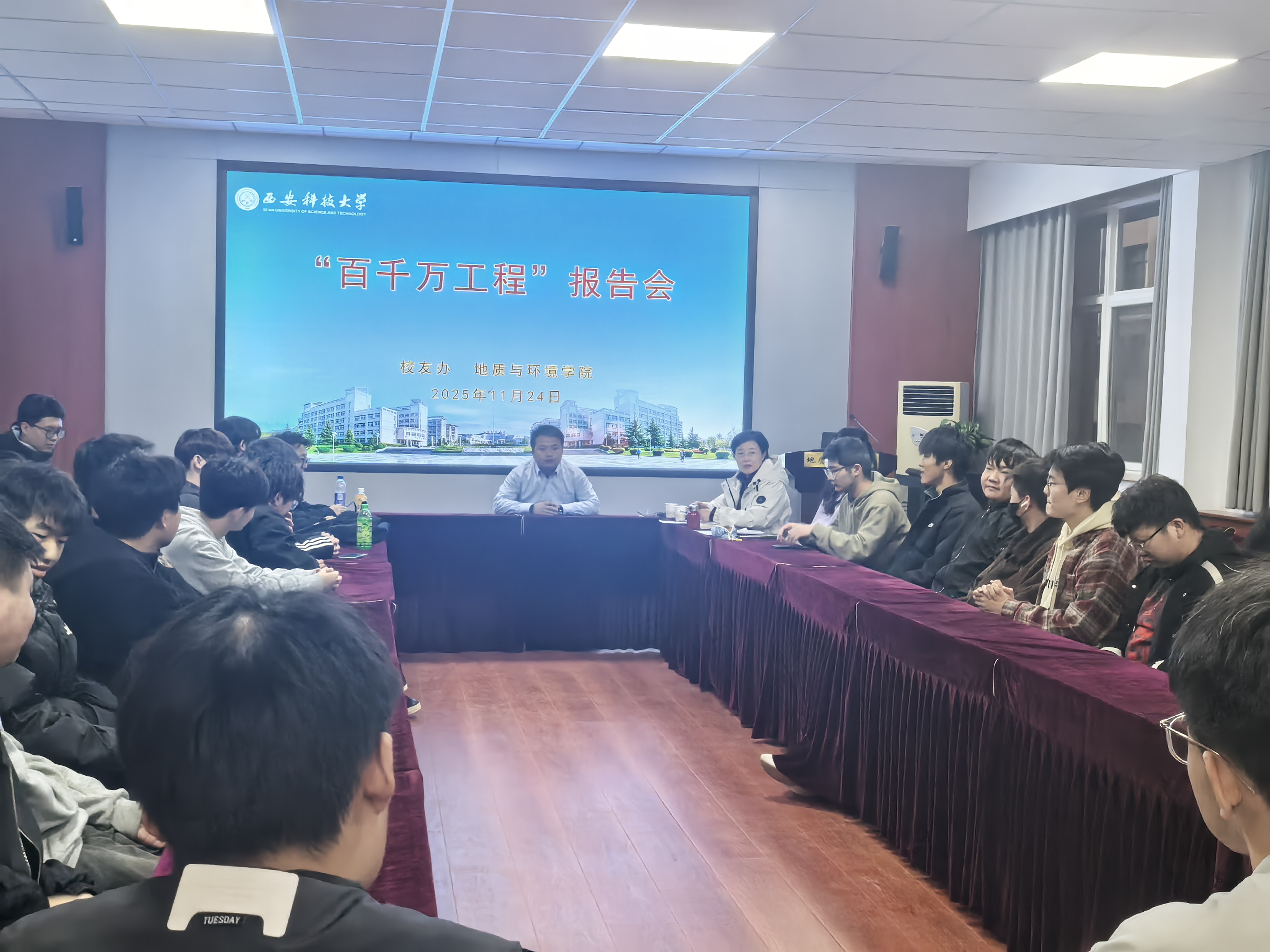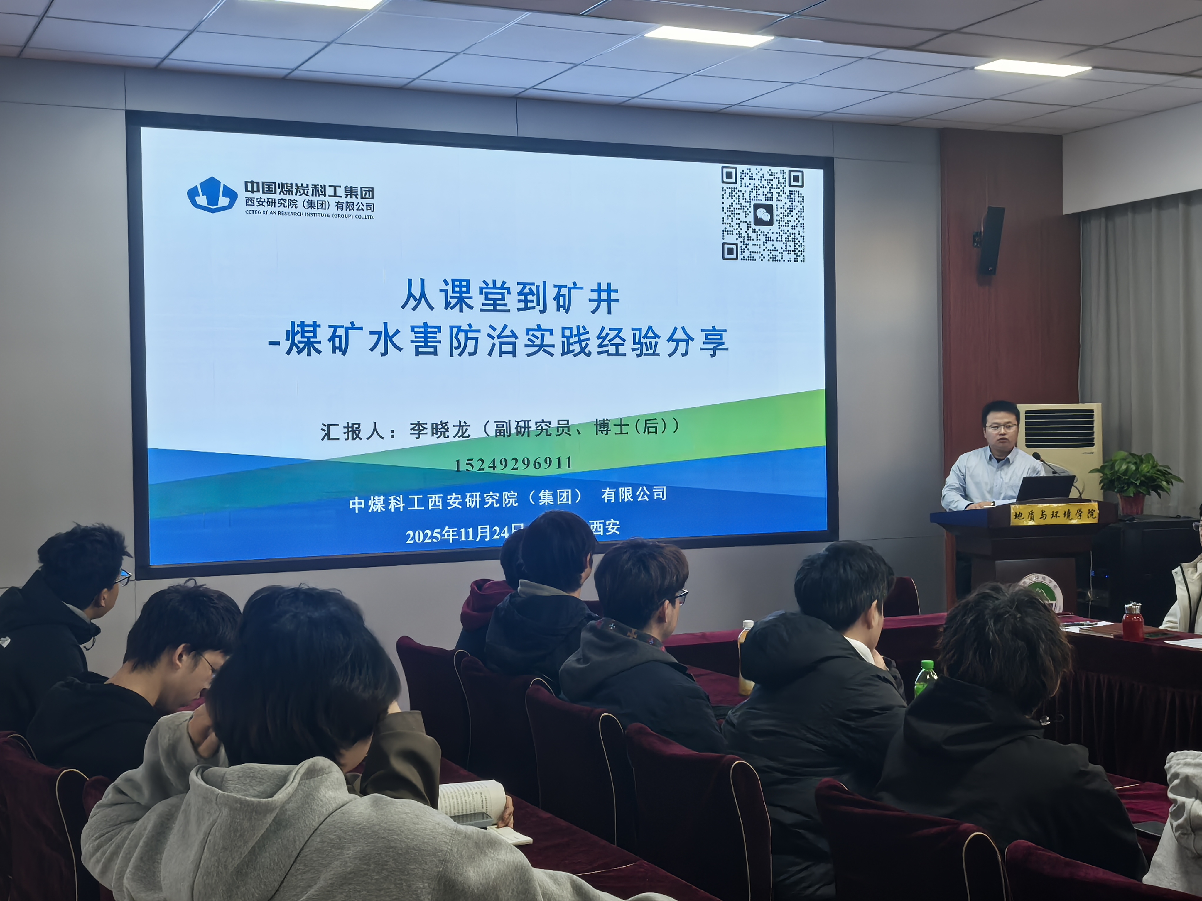11月24日下午,学院在骊山校园11号教学楼322会议室举办“百千万工程”系列讲座,特邀学院2013届地质工程本科毕业生李晓龙,以“从课堂到矿井—煤矿水害防治实践经验分享”为题交流,公司学工办主任李琳主持讲座,2024级本科生代表50余人参加。
