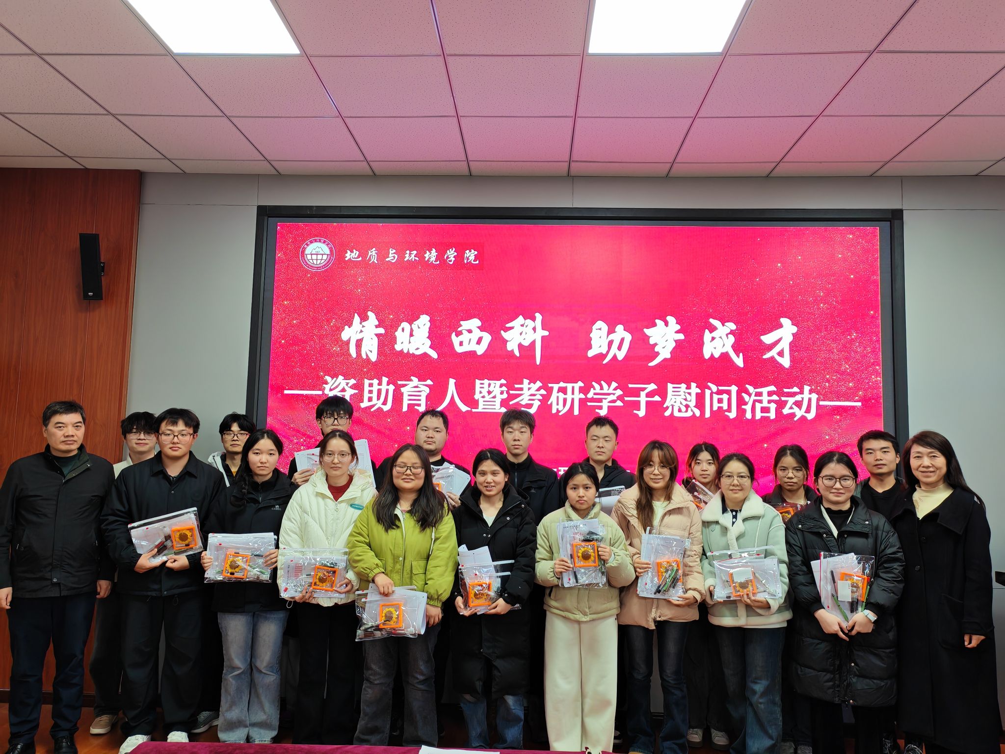 活动现场,学院还为考研学子发放了精心准备的慰问品,传递温暖与关怀,并预祝大家在考研中取得理想成绩。