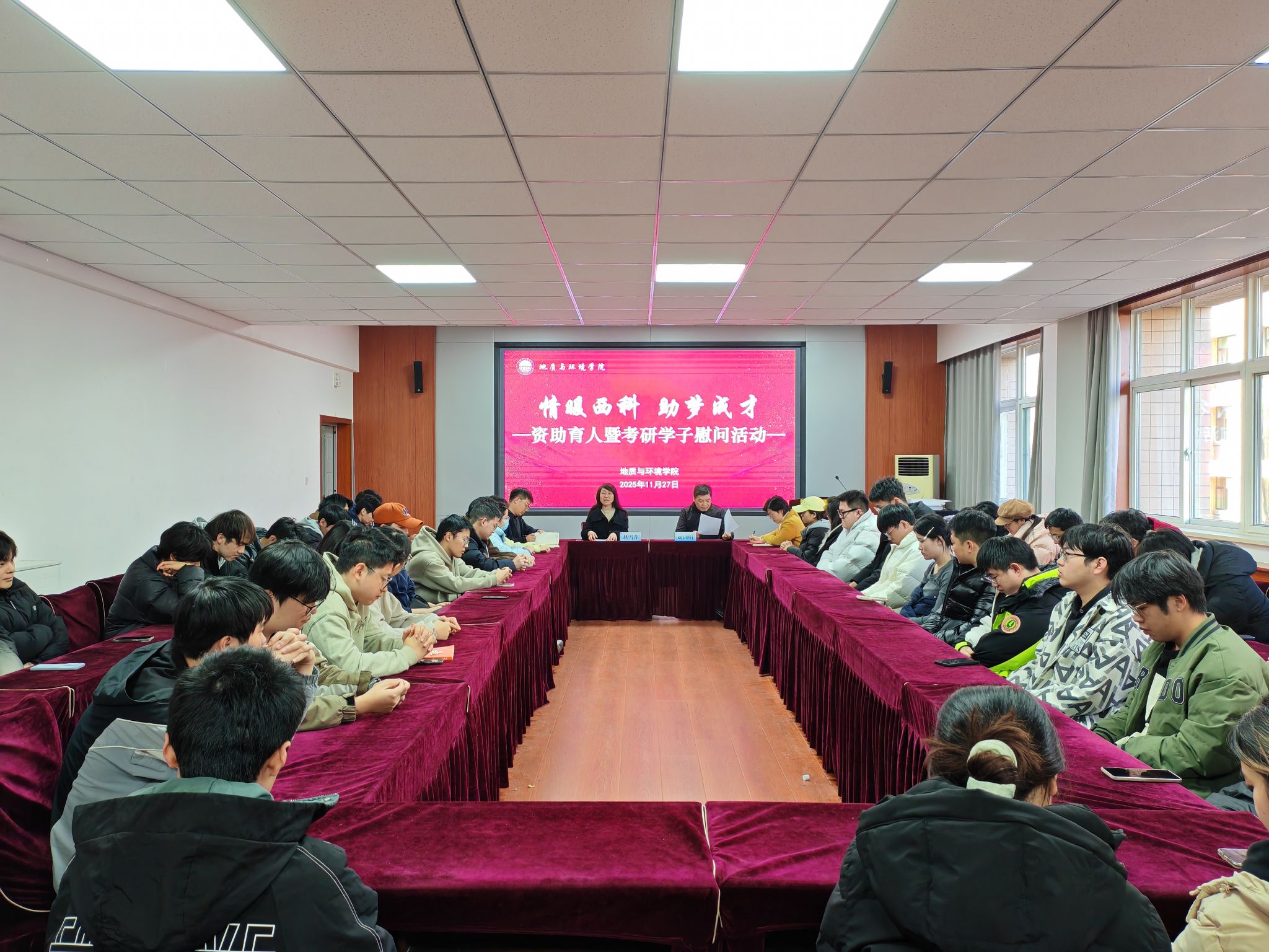 为深化资助育人工作,助力考研学子全力冲刺,11月27日,学院在骊山校园11教322举行“情暖西科助梦成才”资助育人暨考研学子慰问活动。公司党委书记赵雪萍、副书记刘训明、团委书记李琳及2022级备战考研同学参加活动。活动由带班辅导员余小涛主持。