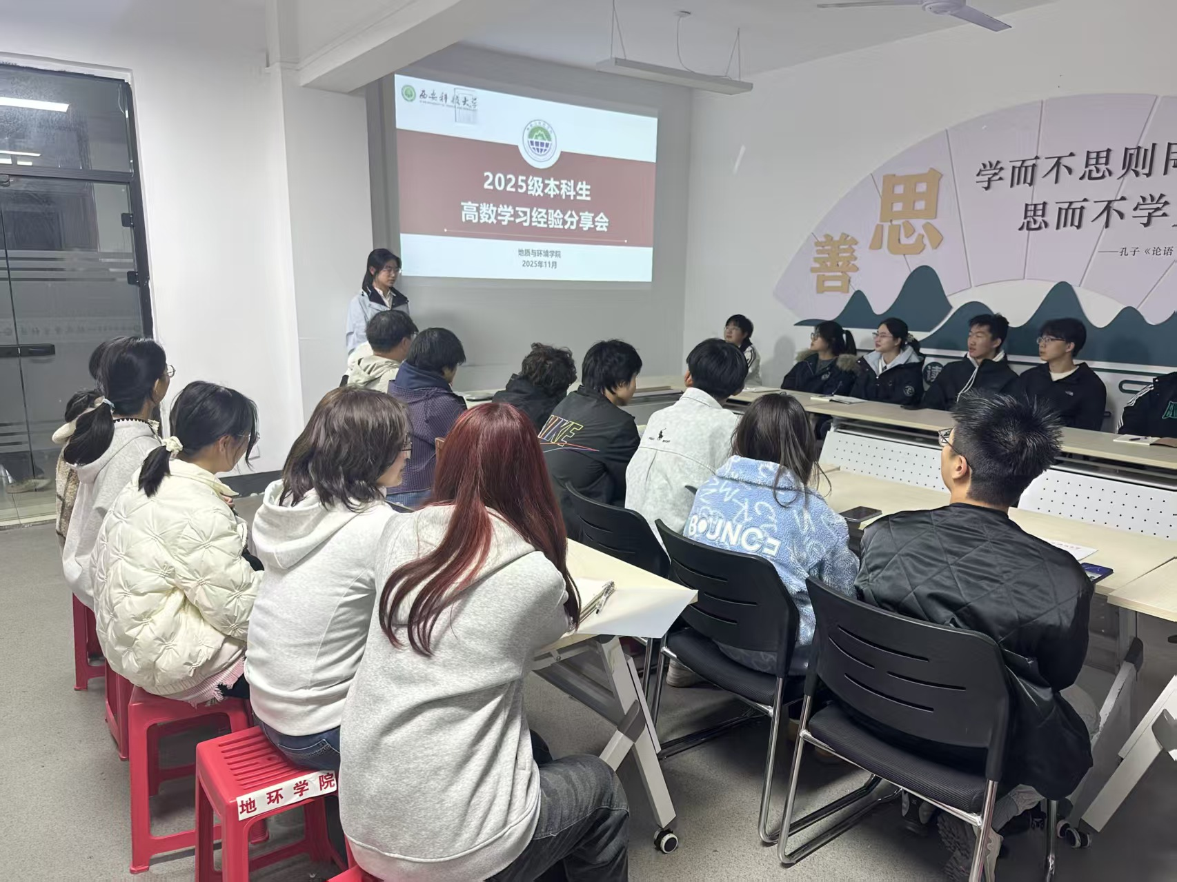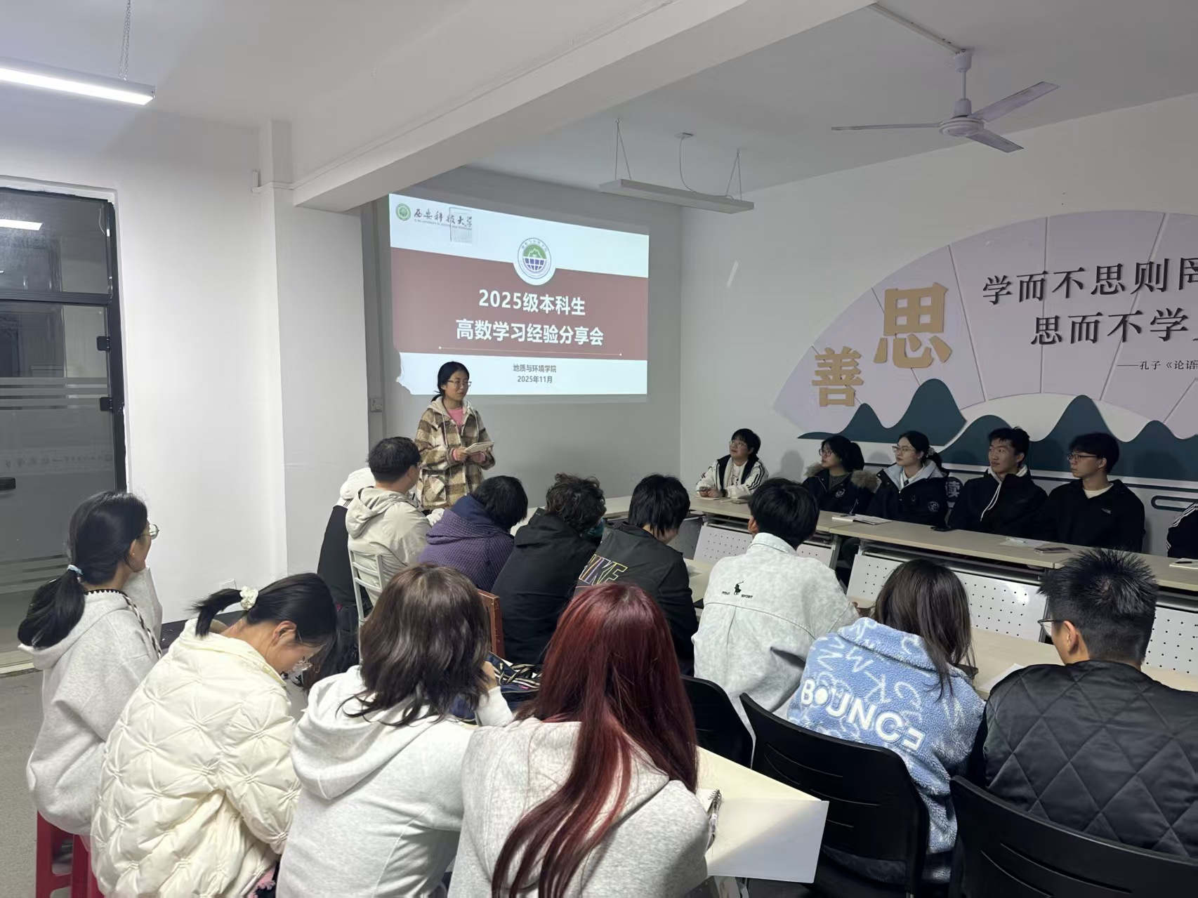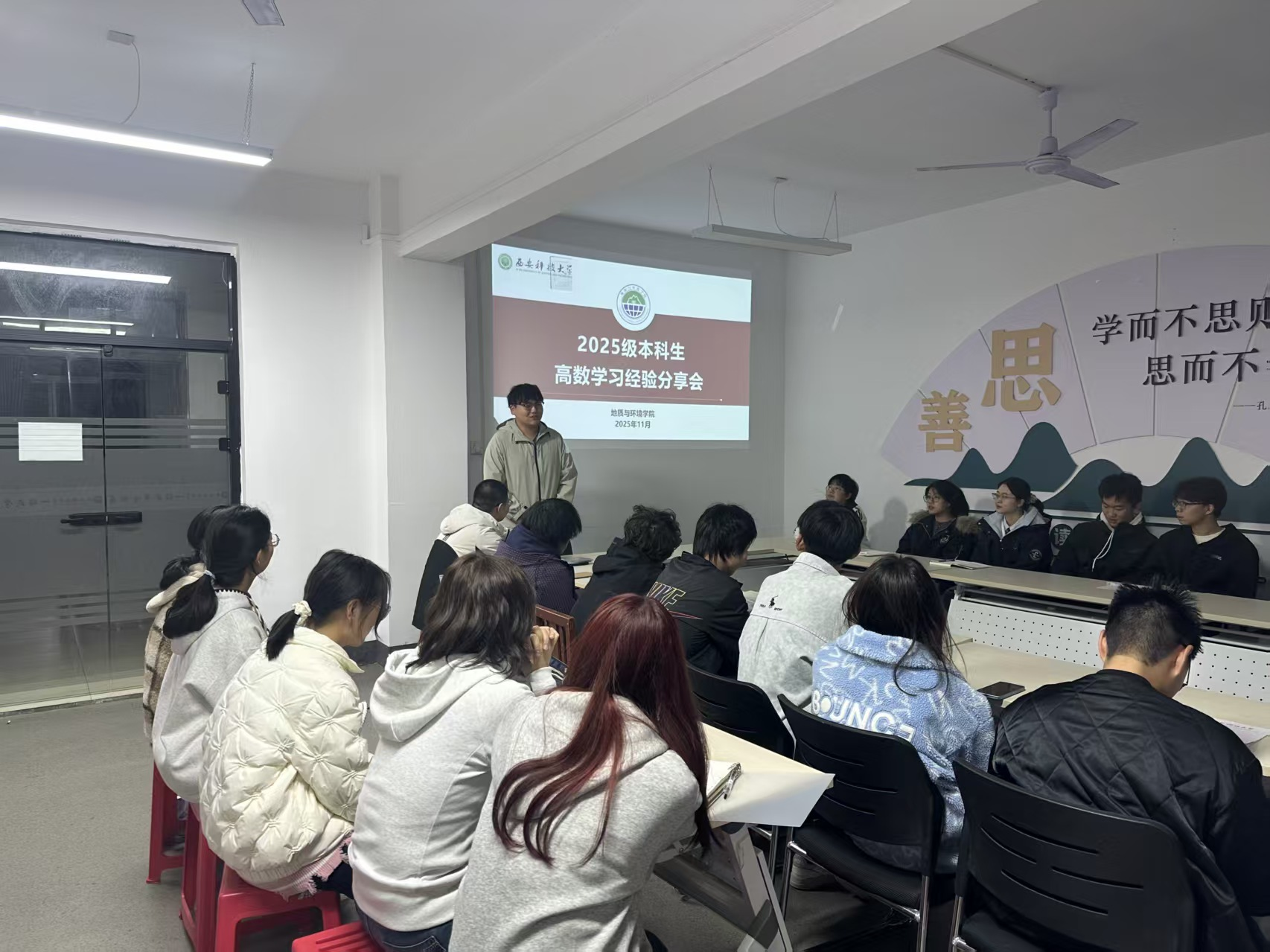 为营造严谨笃学、互促共进的优良学风,助力2025级新生攻克高等数学学习难点,掌握科学有效的学习方法,11月25日,学院于“一站式”员工社区举办了2025级高等数学学习经验分享会。本次分享会特邀在近期章节测试中取得优异成绩的2025级员工代表高雪棋、程可心、夏宇龙、韩贝、韩梓萌担任主讲,2025级辅导员周佳瑞主持,2025级员工代表参会。
