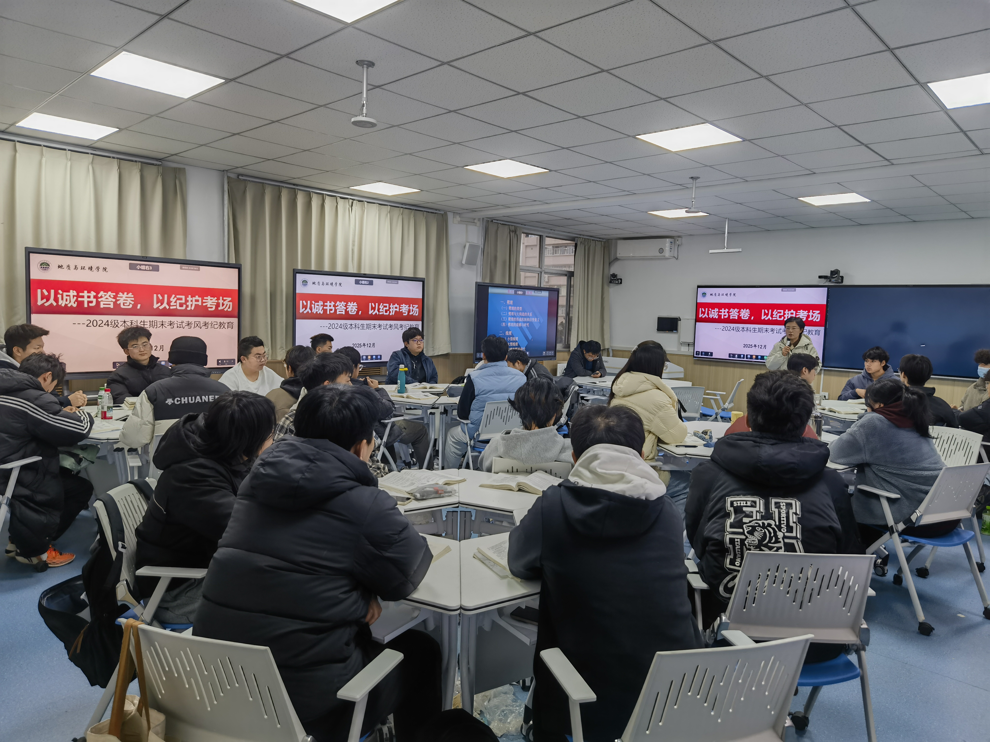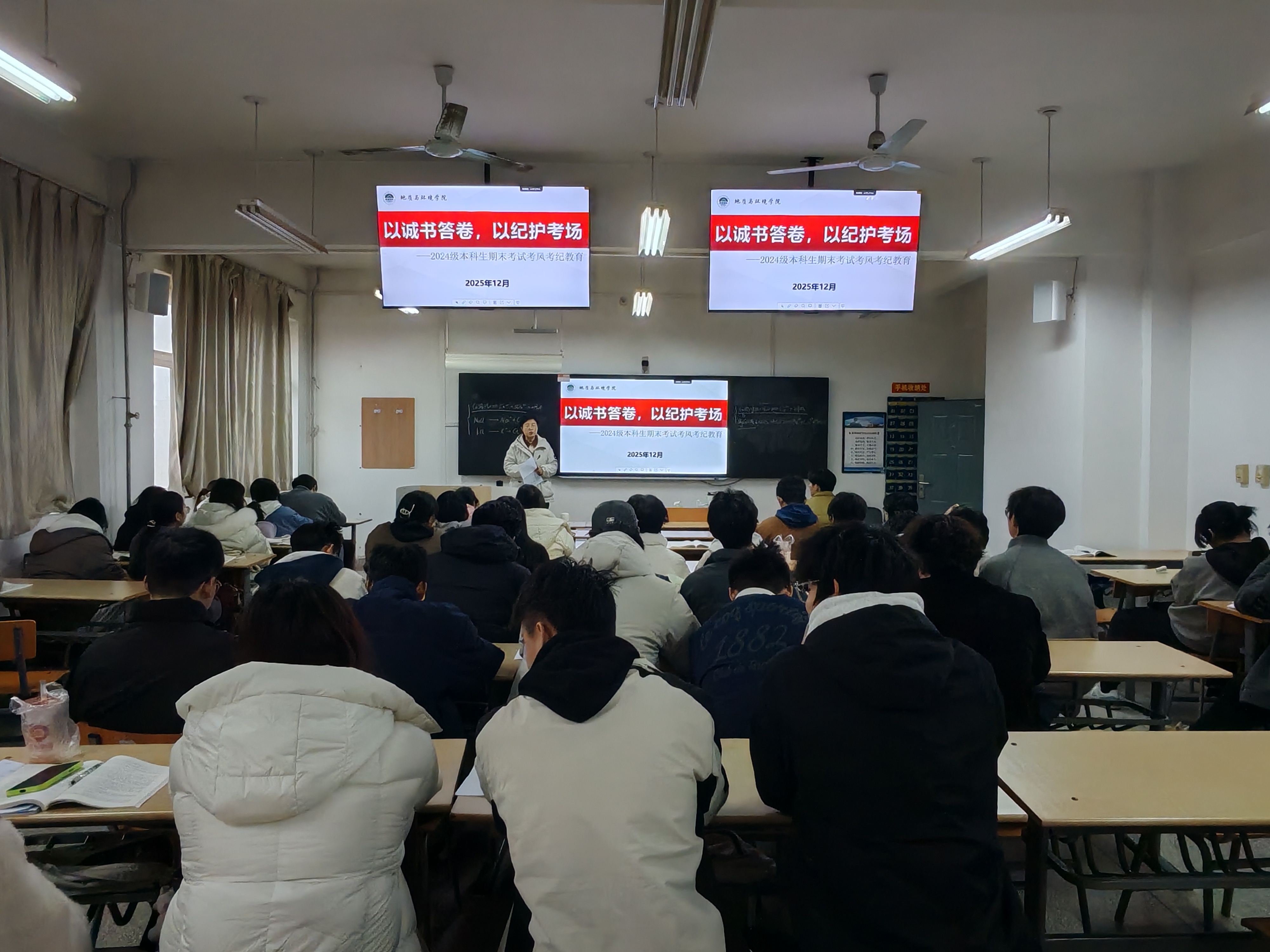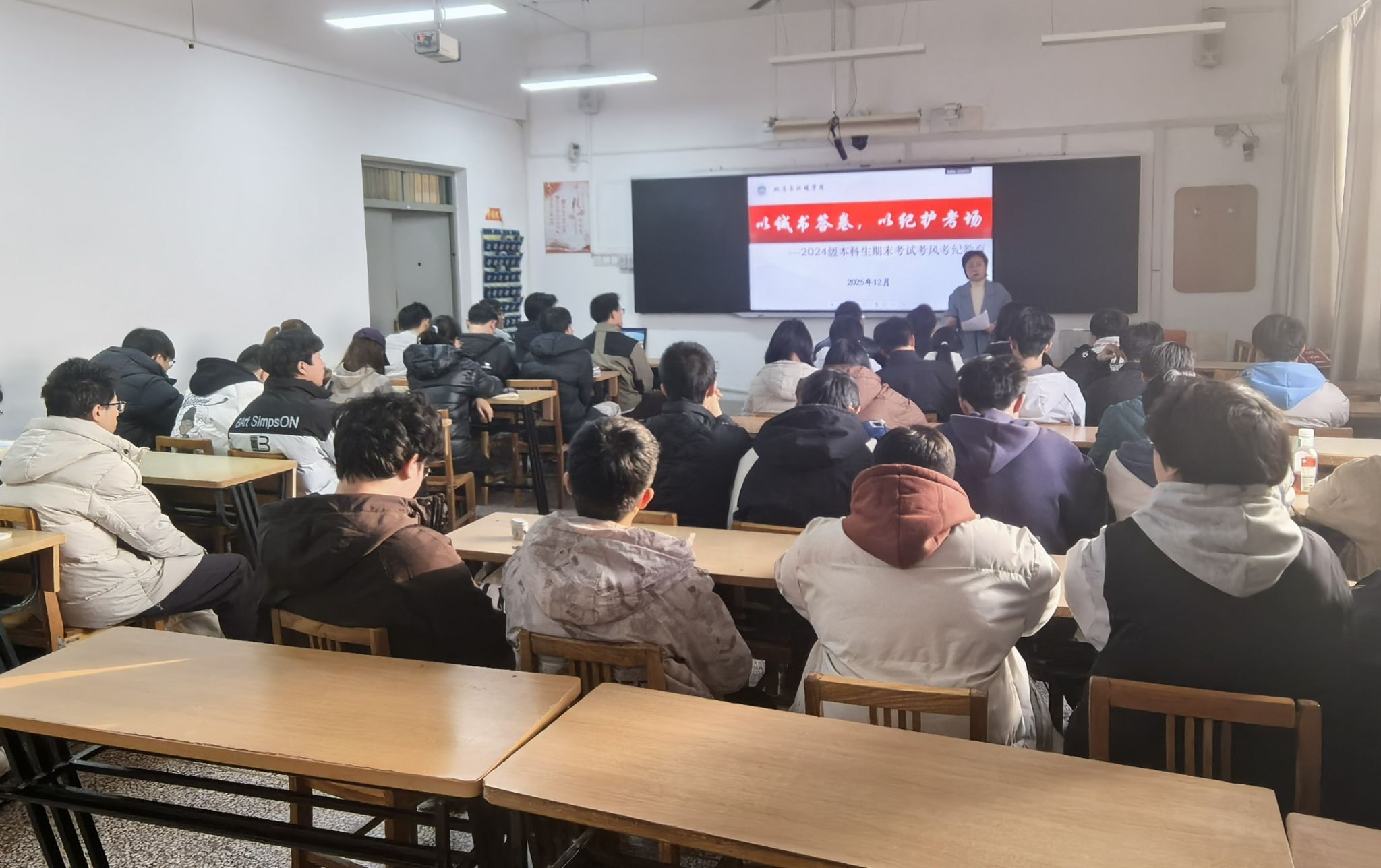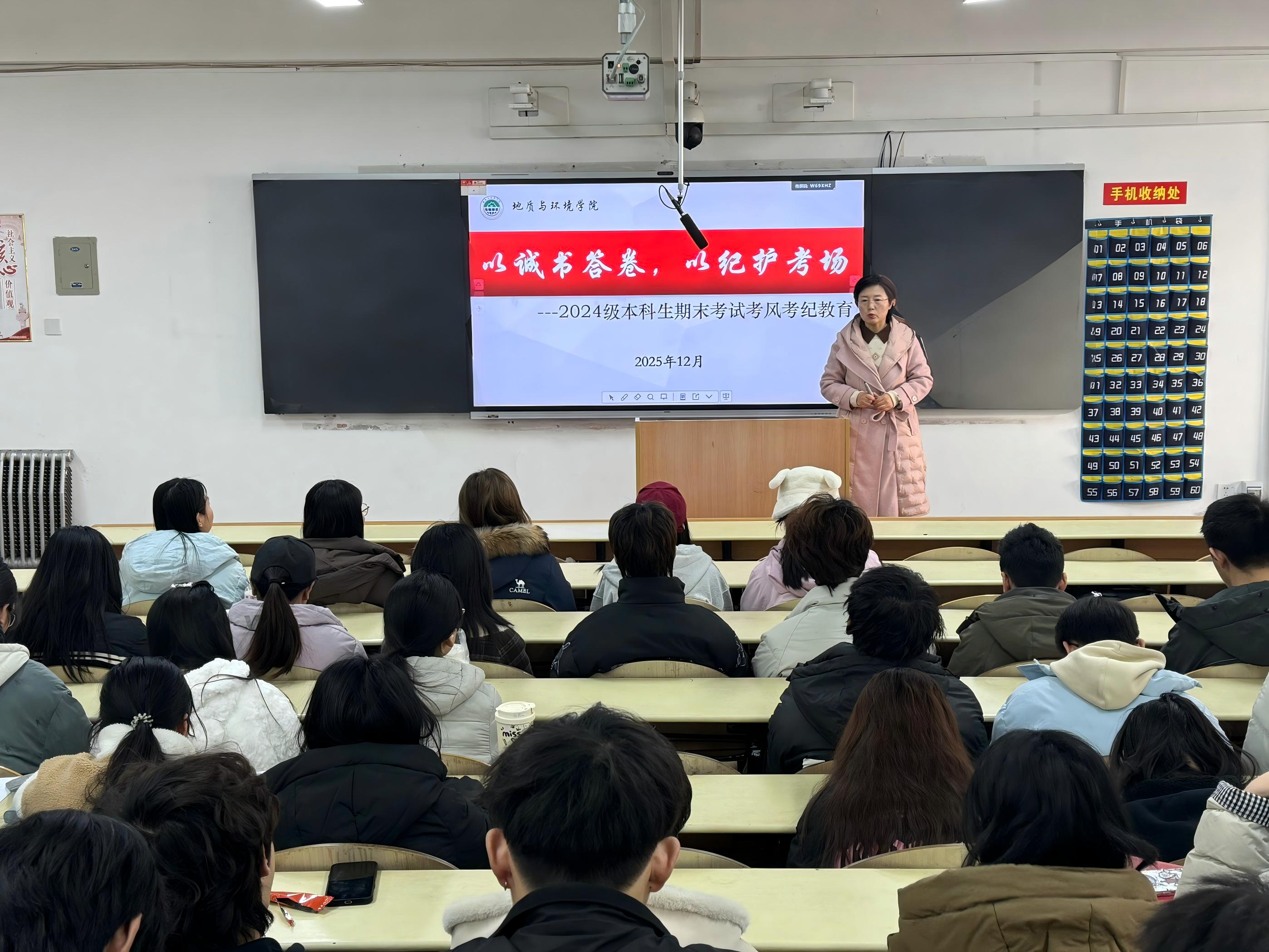 为严肃期末考试纪律,引导2024级本科生树立诚信应考意识,从容备战期末考试。12月15日至19日,学院学工办主任、2024级本科生辅导员李琳分批次在1号、3号、11号教学楼,为学院2024级9个本科班员工开展期末考风考纪专题教育。