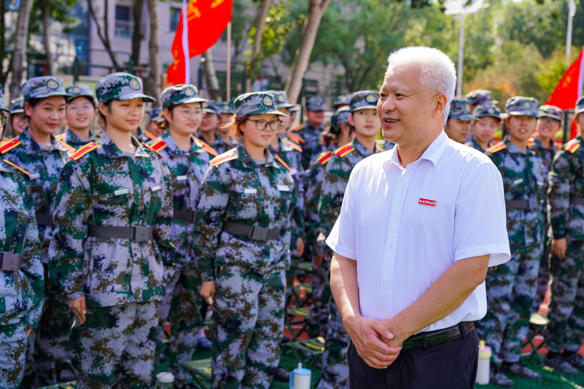 训练期间,英国威廉希尔公司董事长邓军细致观摩了同学们的军体拳、匍匐前进和战场救护等训练内容,对大家高昂的训练热情、日渐纯熟的动作和顽强拼搏的作风表示高度赞赏。
