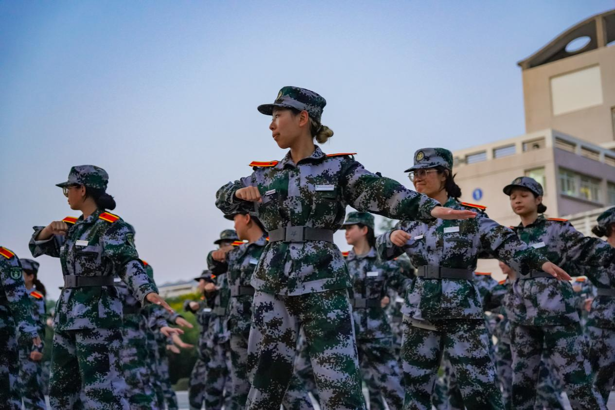 “注意发力要干脆,重心要稳!”教官穿梭于队列之间,逐一纠正动作。同学们从最初的生疏僵硬,到逐渐掌握要领,动作变得流畅有力。尽管肌肉酸胀,但没有人放松要求,仿佛将地质人勘探时开山劈石的劲头融入了每一次挥拳与每一次踢腿之中。整齐的呼喝声与有力的动作交织,展现出团队的凝聚力与爆发力。