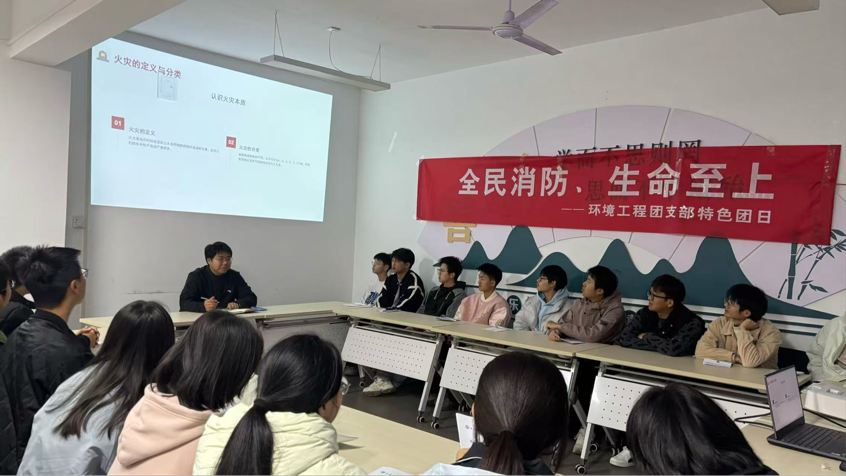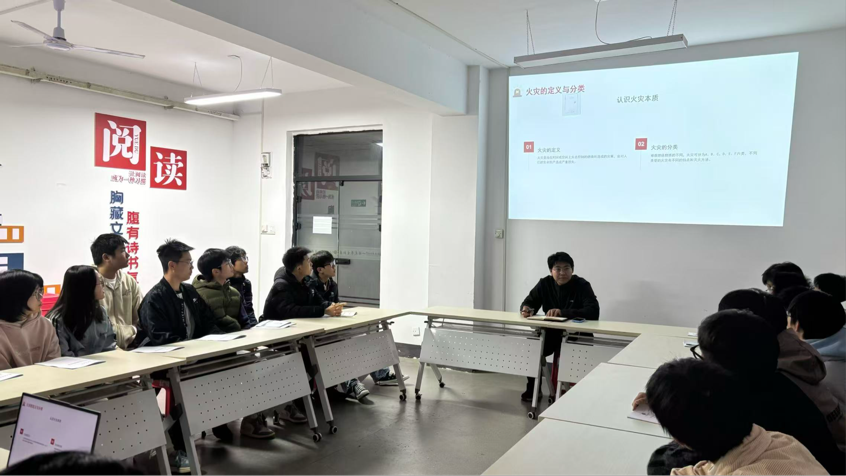 活动中,团支书带领大家学习核心消防知识,讲解“初期3分钟黄金救援期”原理、宿舍及环工实验室典型隐患,结合案例剖析火电特性,传授灭火器使用及火灾类型判断技巧。