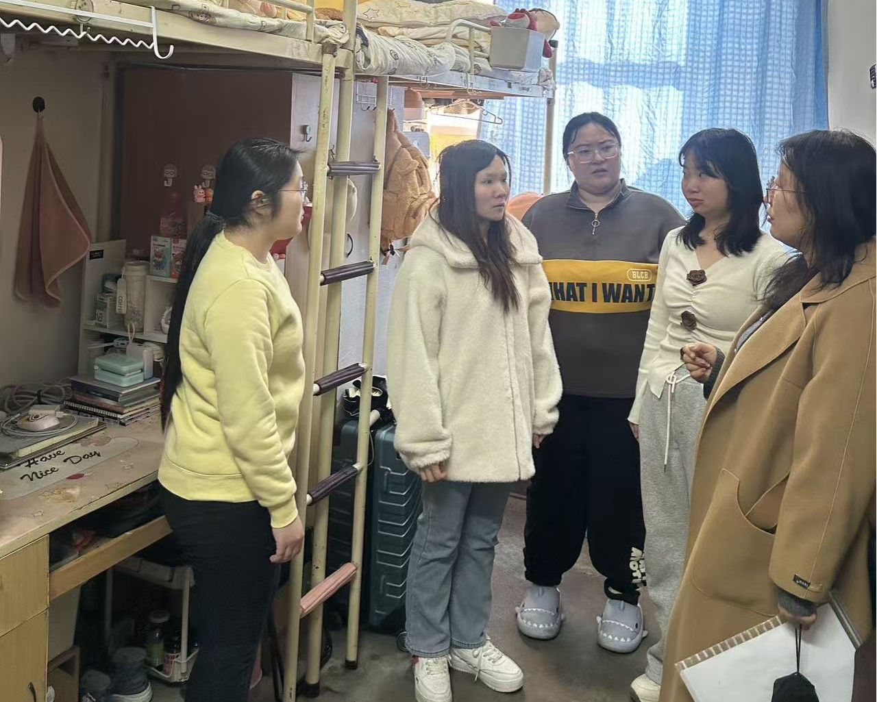 会后,韩蕊带领员工干部逐一走访2023级员工宿舍开展专项检查及安全教育。重点排查违规插排、大功率电器、私拉电线等安全隐患,对排查出的问题现场督促整改;向同学们演示火灾逃生正确步骤,重申假期宿舍断电、门窗锁闭等安全注意事项;强调提高对网络诈骗的防范意识,提醒离校同学妥善保管个人财物、规划安全行程,留校同学严格遵守公寓管理规定、杜绝夜不归宿。此外,还提醒同学们提前做好离校或留校安排,确保假期期间通信畅通,遇突发情况第一时间联系辅导员。