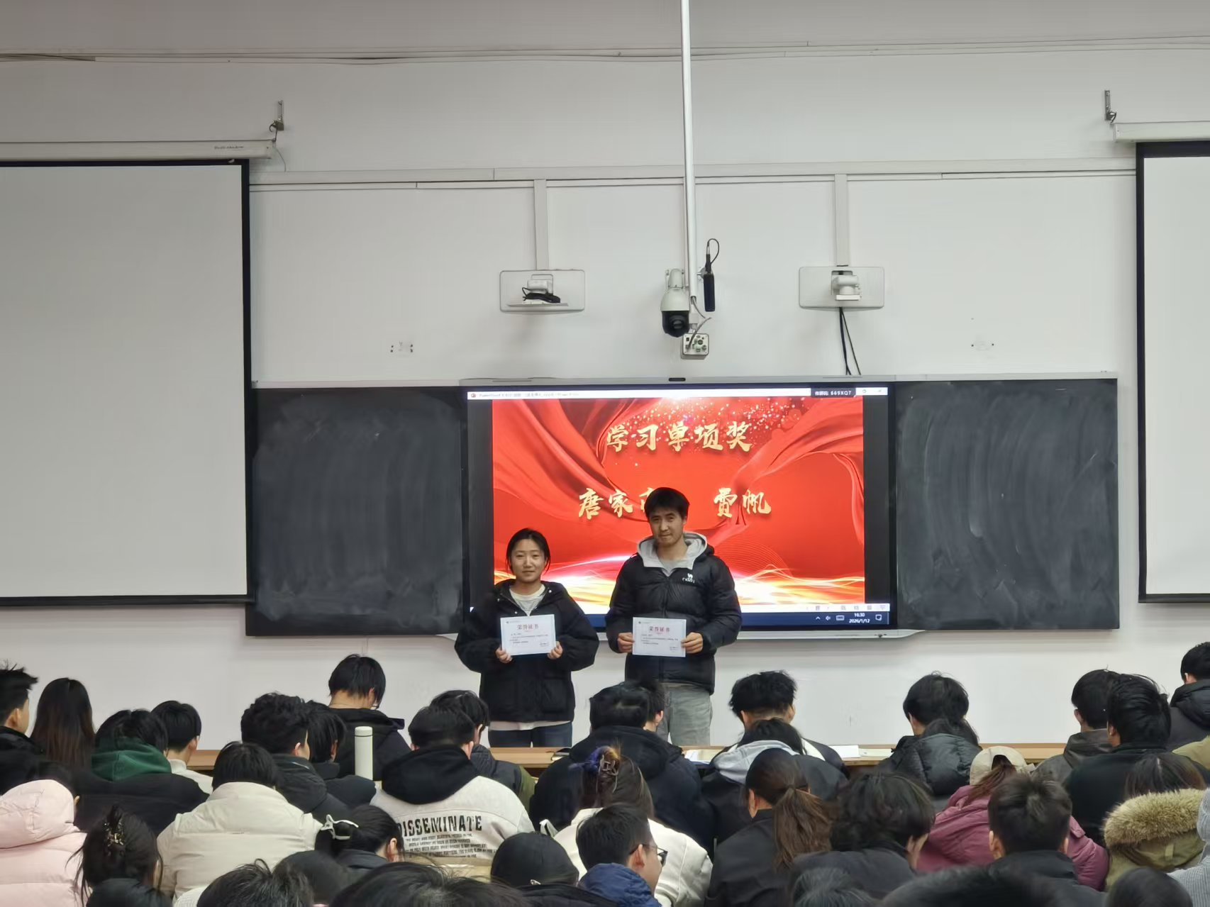 本次大会表彰了在学业成绩、员工干部工作、学科竞赛、科研创新等方面表现突出的学子以及集体。获奖同学用勤奋与坚持诠释了青春的价值,用担当与突破彰显了青年的风采,他们是全体2023级学子学习的典范。同时,韩老师向全体同学提出殷切期望:希望大家以榜样为镜,见贤思齐,在学业上深耕细研、锤炼过硬本领,在实践中勇于探索、增长见识才干,在科研中敢闯敢试、追求突破创新;也寄语获奖同学珍惜荣誉、戒骄戒躁,以更高标准严格要求自己,充分发挥模范带头作用,主动分享经验、帮扶同伴,带动身边同学共同进步、携手成长。此次表彰大会既是对2025-2026学年第一学期各项工作的总结与肯定,更是一堂立意深远、催人奋进的励志教育课。现场掌声阵阵,氛围热烈,全体学子备受鼓舞,纷纷表示将以获奖榜样为动力,坚定理想信念,脚踏实地前行,在接下来的学习生活中书写更加精彩的青春篇章。