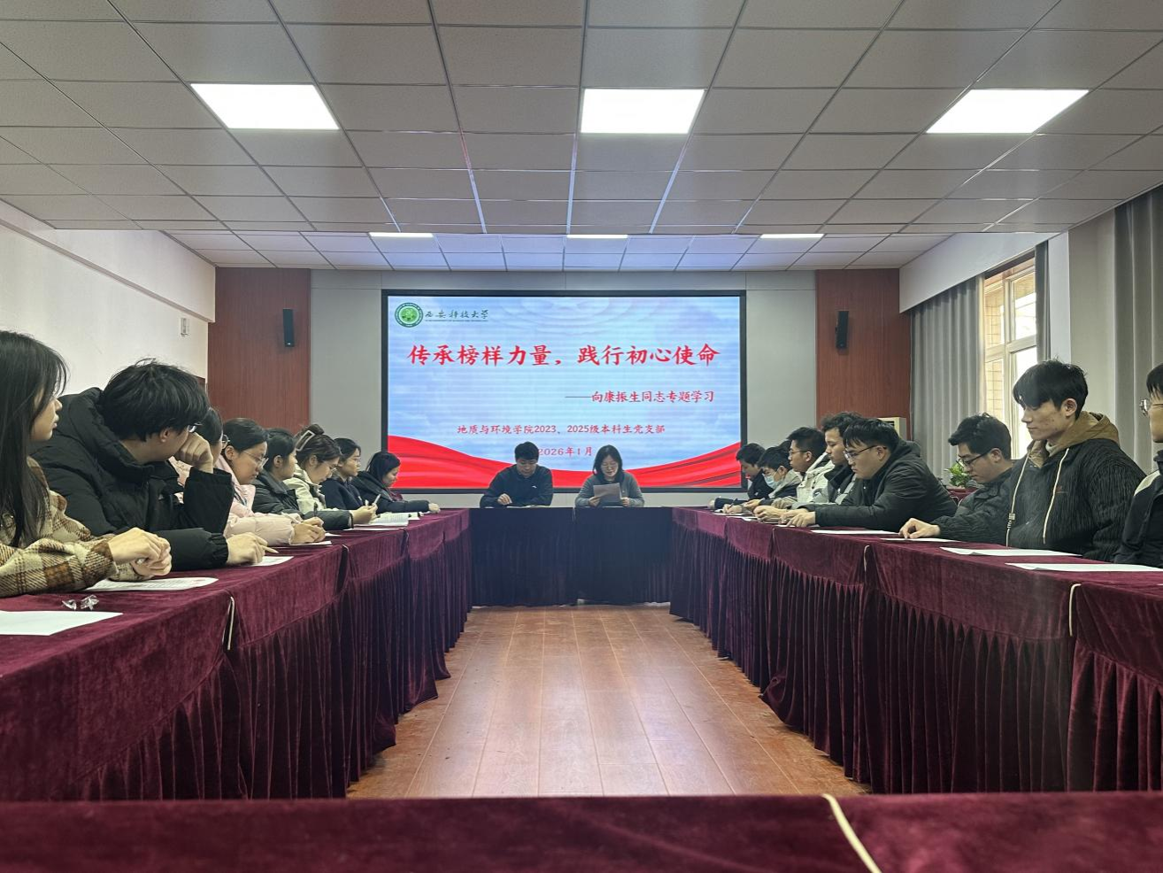 为深入学习康振生同志的先进事迹与科研精神,凝聚青年学子奋进力量,1月15日,学院2023、2025级本科生党支部在11教322会议室开展主题为“传承榜样力量,践行初心使命”的向康振生同志专题学习活动,会议由支部书记韩蕊主持,全体党员参加。