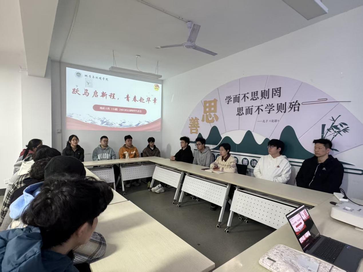 为深入学习贯彻习近平新时代中国特色社会主义思想,推动团员和青年主题教育走深走实、落地见效,近日,地质工程(卓越)2401团支部在“一站式”员工社区,召开“跃马启新程,青春赴华章”专题组织生活会。学院团委书记李琳及支部全体团员参会。