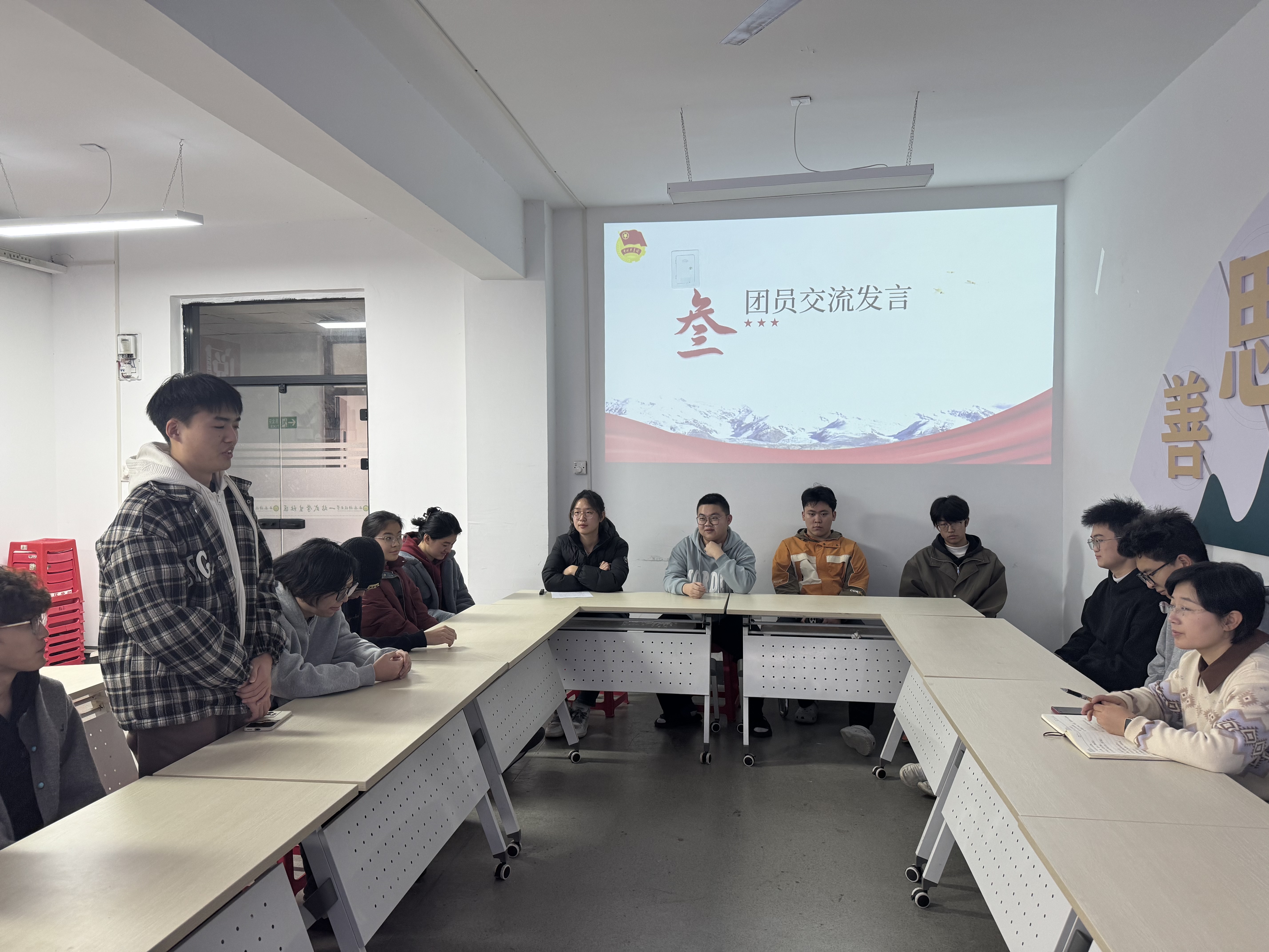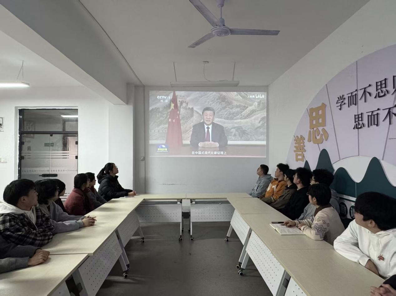 会议紧扣主题、按规范流程有序推进。伊始,全体团员起立齐唱团歌《光荣啊,中国共青团》,嘹亮的歌声凝聚起青春奋进的力量。随后,大家集体学习国家主席习近平二〇二六年新年贺词,从贺词中汲取奋斗动能、筑牢思想根基。团支书张鑫宇作年度工作报告,全面梳理成效、查摆不足,明确了下一阶段工作方向。