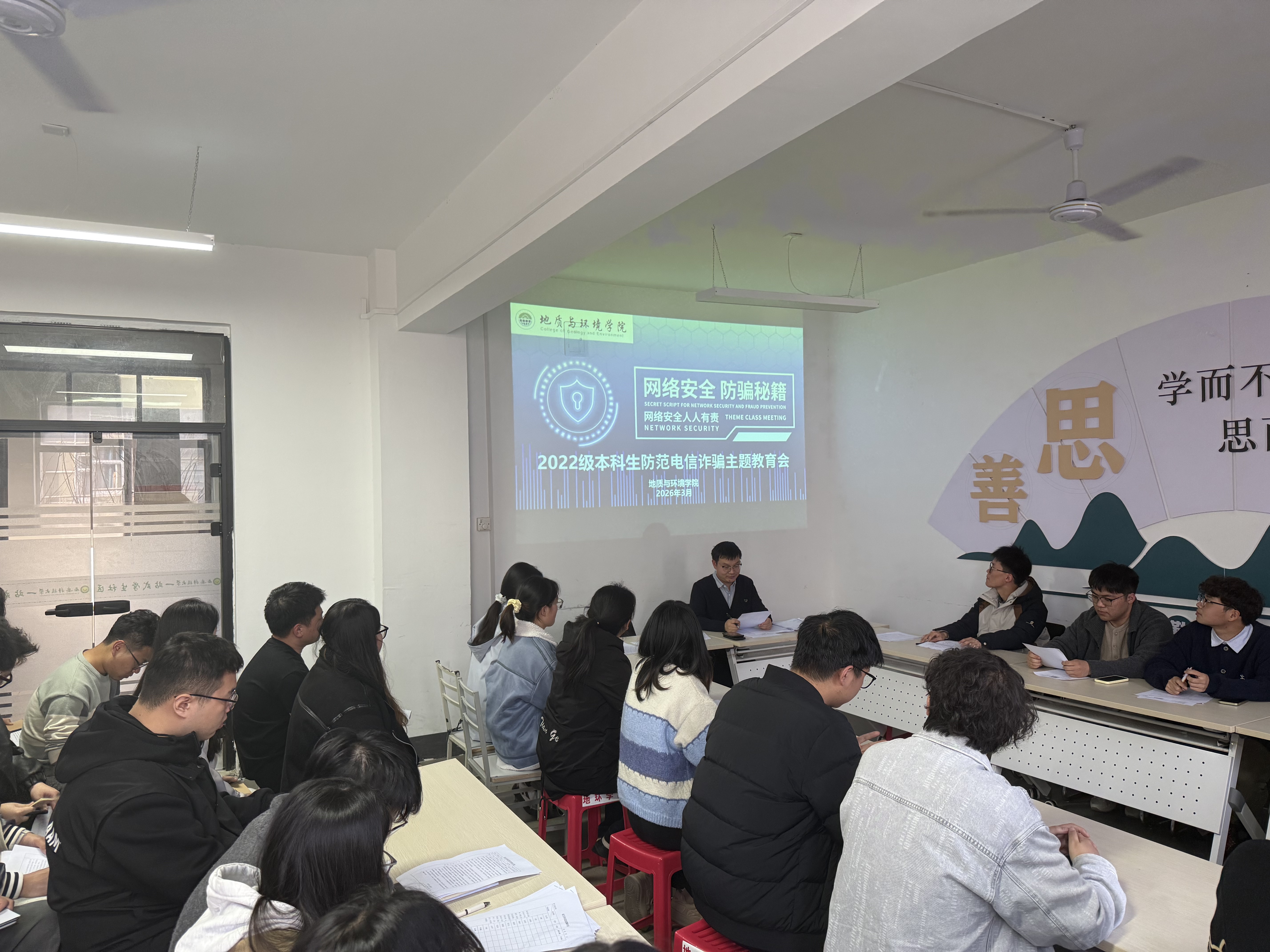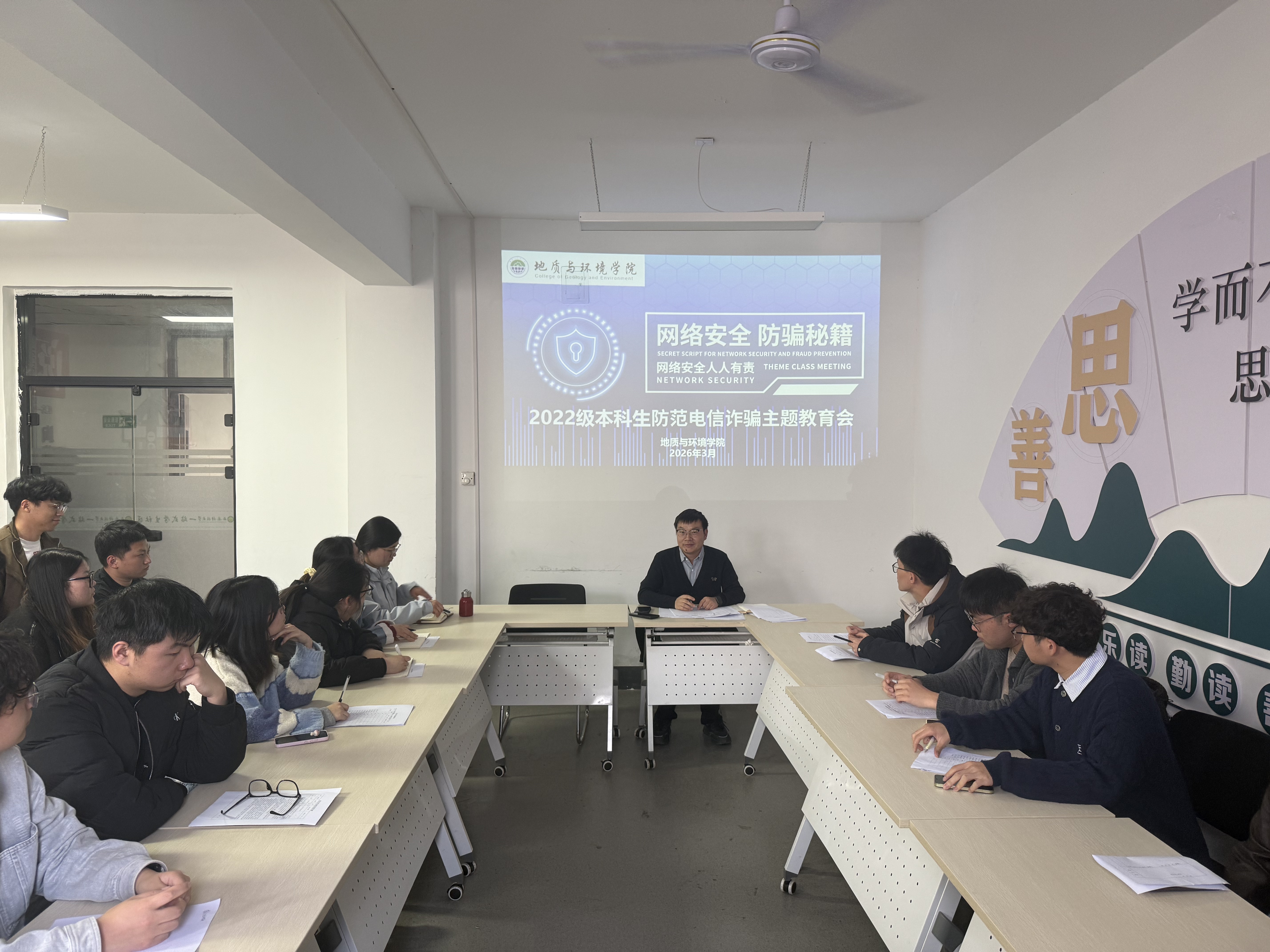 为进一步强化员工网络安全素养,精准防范电信网络诈骗风险,帮助2022级本科生筑牢思想与行动双重防线,3月10日,学院在“一站式”员工社区召开2022级本科生防范电信诈骗主题教育会。会议由辅导员余小涛主持,2022级本科生党员及员工干部参会。