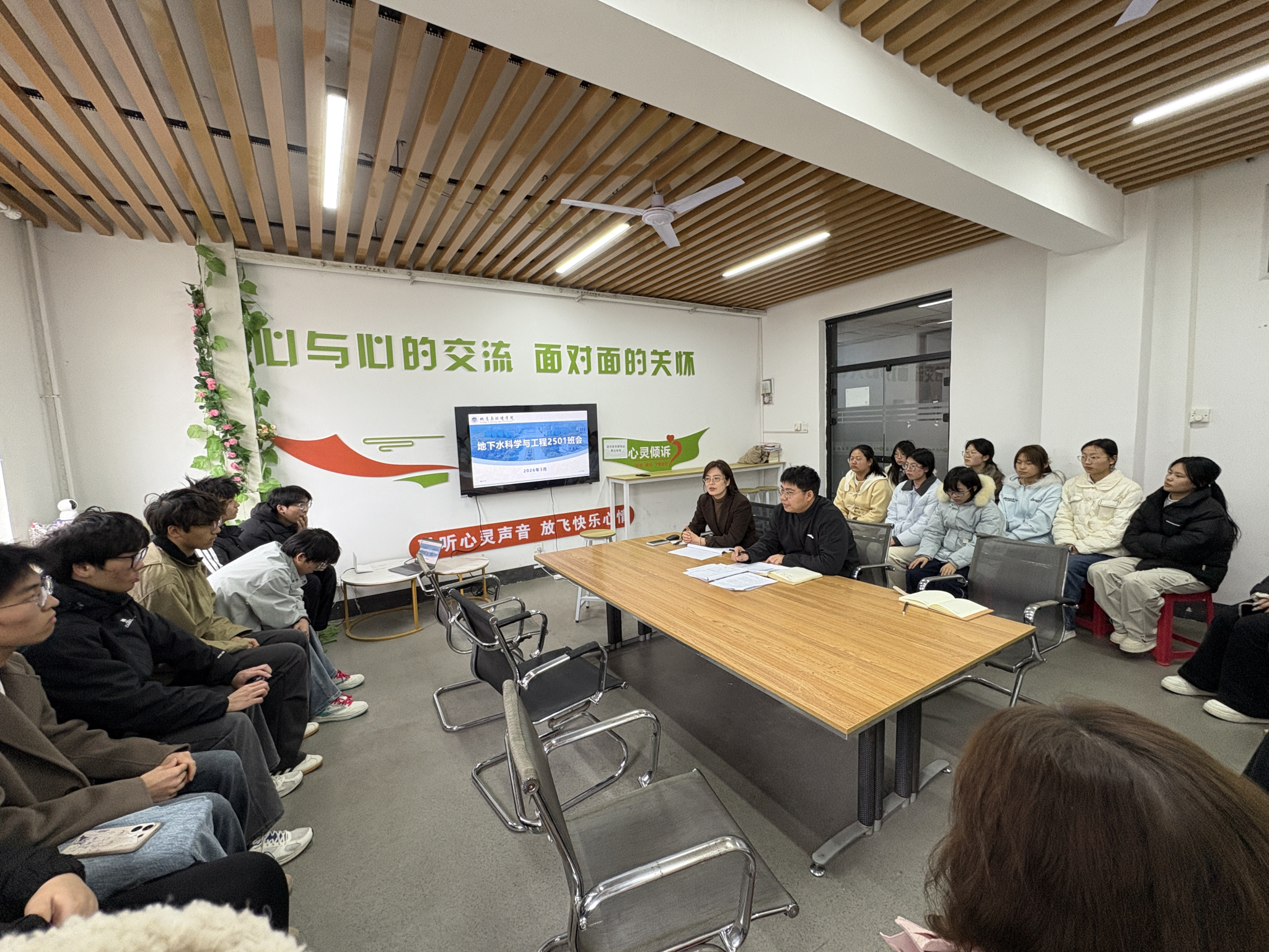 为深入剖析班级学业状况,查找不足、明确方向,3月16日,学院地下水科学与工程2501班在“一站式”员工社区召开学情分析主题班会。2025级辅导员周佳瑞、班主任肖乐乐老师及班级全体同学参加会议。
