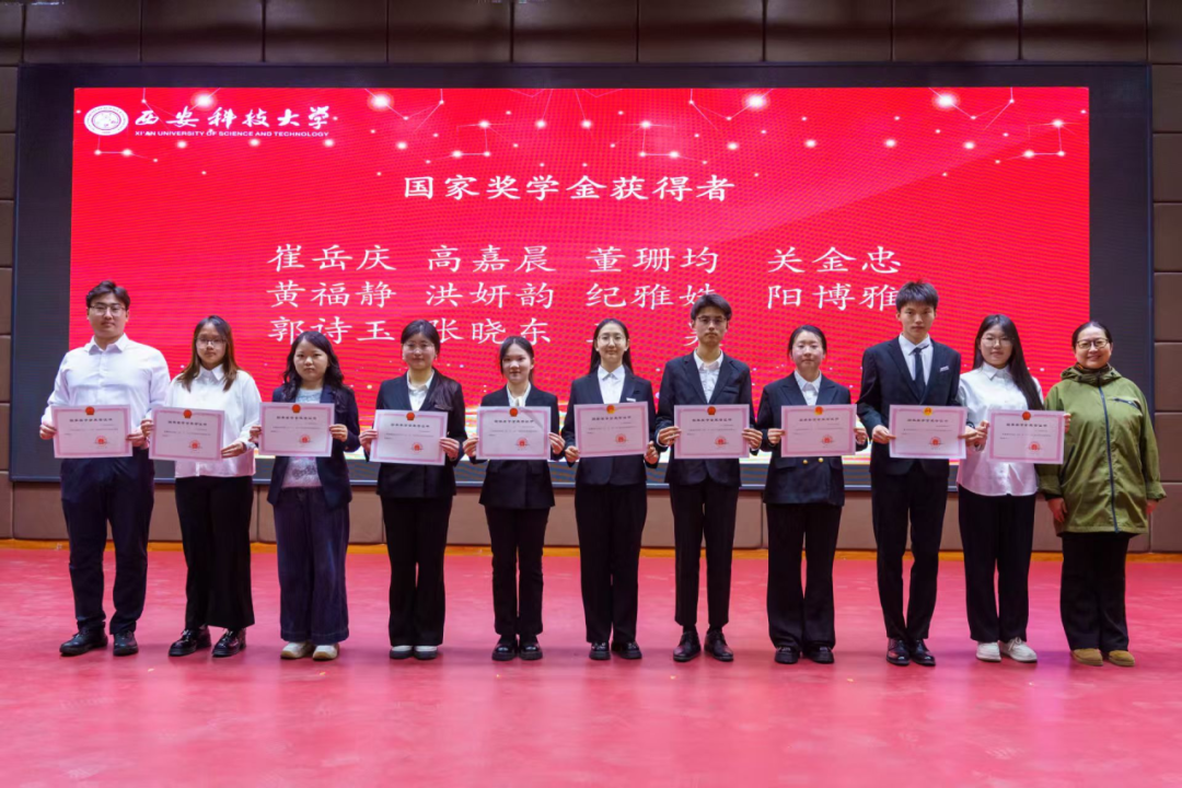 参会的学院负责人分别为2024—2025学年国家励志奖学金代表、国家奖学金获奖员工颁发证书,并为本次宣讲团成员颁发聘书,激励他们将榜样力量传递给更多同学。