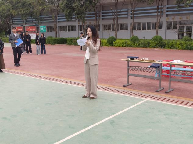 校团委书记高欣致辞,希望全体运动员充分展现团结进取、蓬勃向上的精神风貌,尊重对手、服从裁判,赛出水平、赛出风格、赛出友谊、赛出成绩;希望全体裁判员公正执裁,营造公平有序的竞赛环境;希望全体工作人员认真履职、细致服务,全力保障赛事顺利开展。